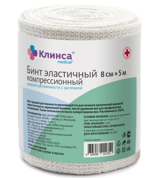 Клинса Бинт эластичный средней растяжимости 8х500 см с застежкой