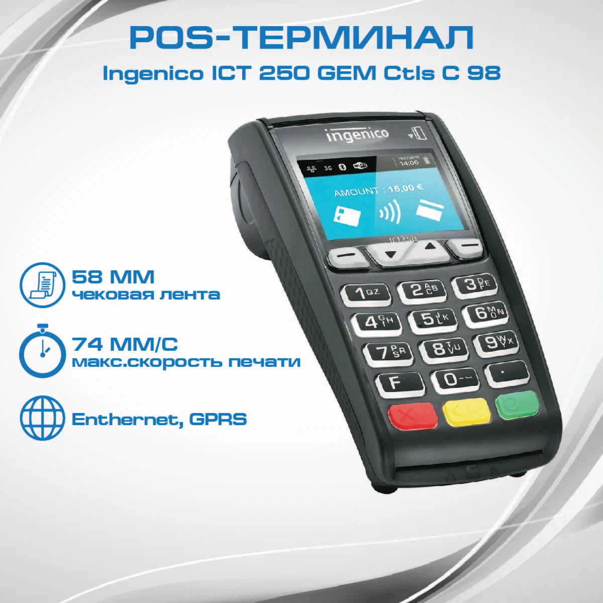 Стационарный POS терминал Ingenico (Инженико) iCT250 gem ctls c98 для эквайринга б/у купить в Москве — выгодная цена, заказ, скидки в интернет-магазине Рустехпром